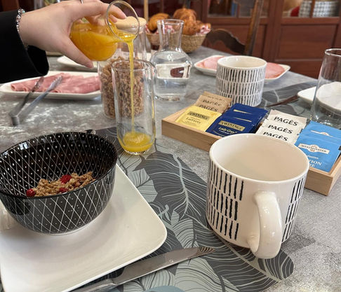 Petit déjeuner personnalisé, réalisé avec des produits frais et de qualité, pensé pour répondre aux envies et besoins de chaque hôte afin de bien démarrer la journée.